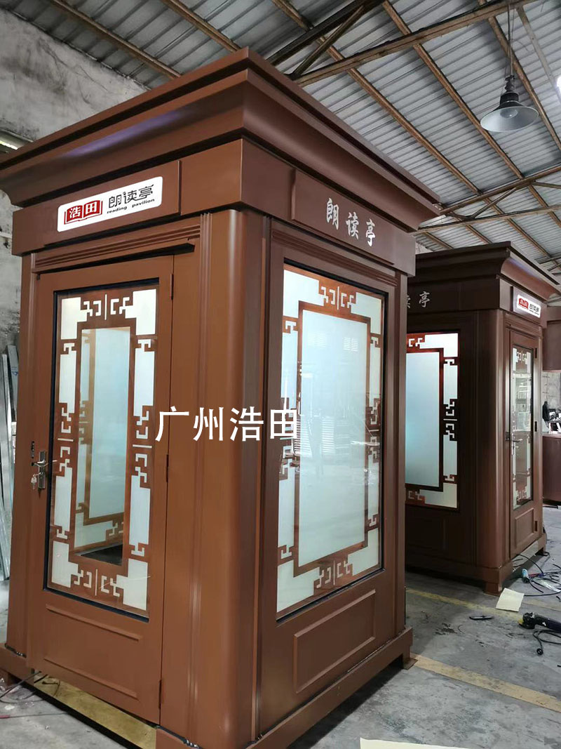朗讀亭尺寸定制:1.7*1.7*3.0米或者1.5*1.5*3.0米(可以根據(jù)您要求來定制朗讀亭)朗讀亭亭身及基座均采用汽車鈑金機(jī)加工成型,表面噴戶外氟碳漆處理,有部分客人問道這個(gè)朗讀亭封閉式的不悶嗎?里面這么小,怎么處理呢?其實(shí)朗讀亭內(nèi)部是可以裝空調(diào)的,還能裝換氣扇,只是要把空調(diào)做成隱藏起來的,整個(gè)亭身的裝飾采用激光切割而成,內(nèi)墻及吊頂均采用不銹鋼制作而成,內(nèi)部采用雙層防火保溫板,具有隔熱、保溫的功能,走暗敷線路,內(nèi)飾搭配暖光燈效果,整個(gè)亭子是非常溫馨的。