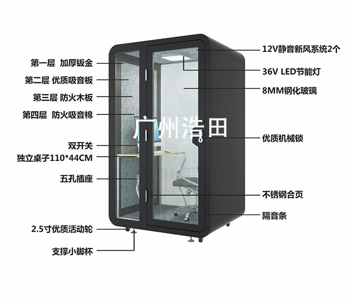 使用范圍廣:錄音室、直播間、電話亭、洽談室、辦公室、會議室、吸煙房、鋼琴房、架子鼓房、薩克斯房、小提琴房等都可使用,有效隔音阻隔雜音。避免打擾同事,家人,鄰居,擾民投訴風險。